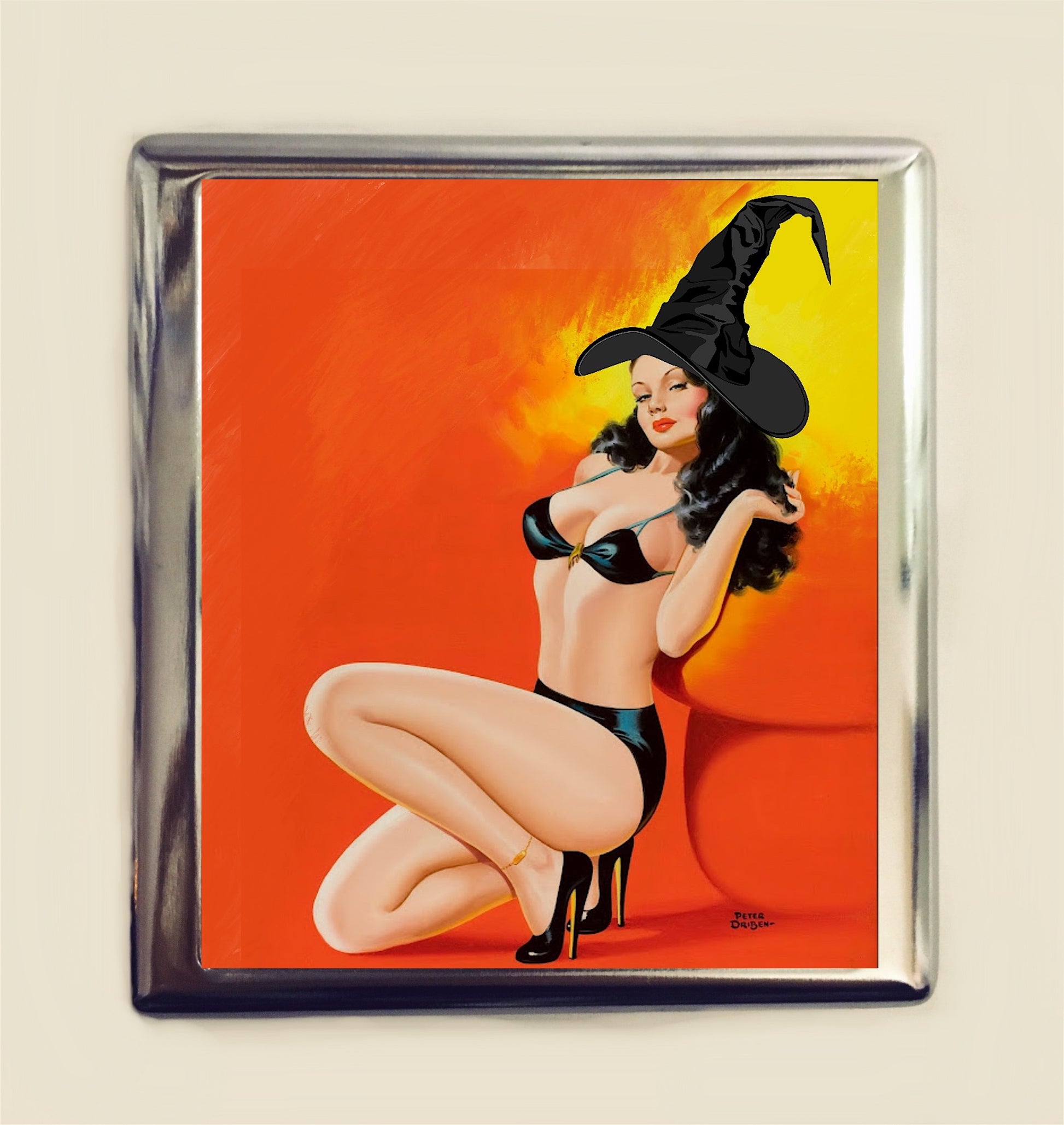 Copy of Pin Up Witch Cigarette Case Business Card ID Holder Wallet Pinup Girl Retro 1950s Halloween Sexy Witchcraft
