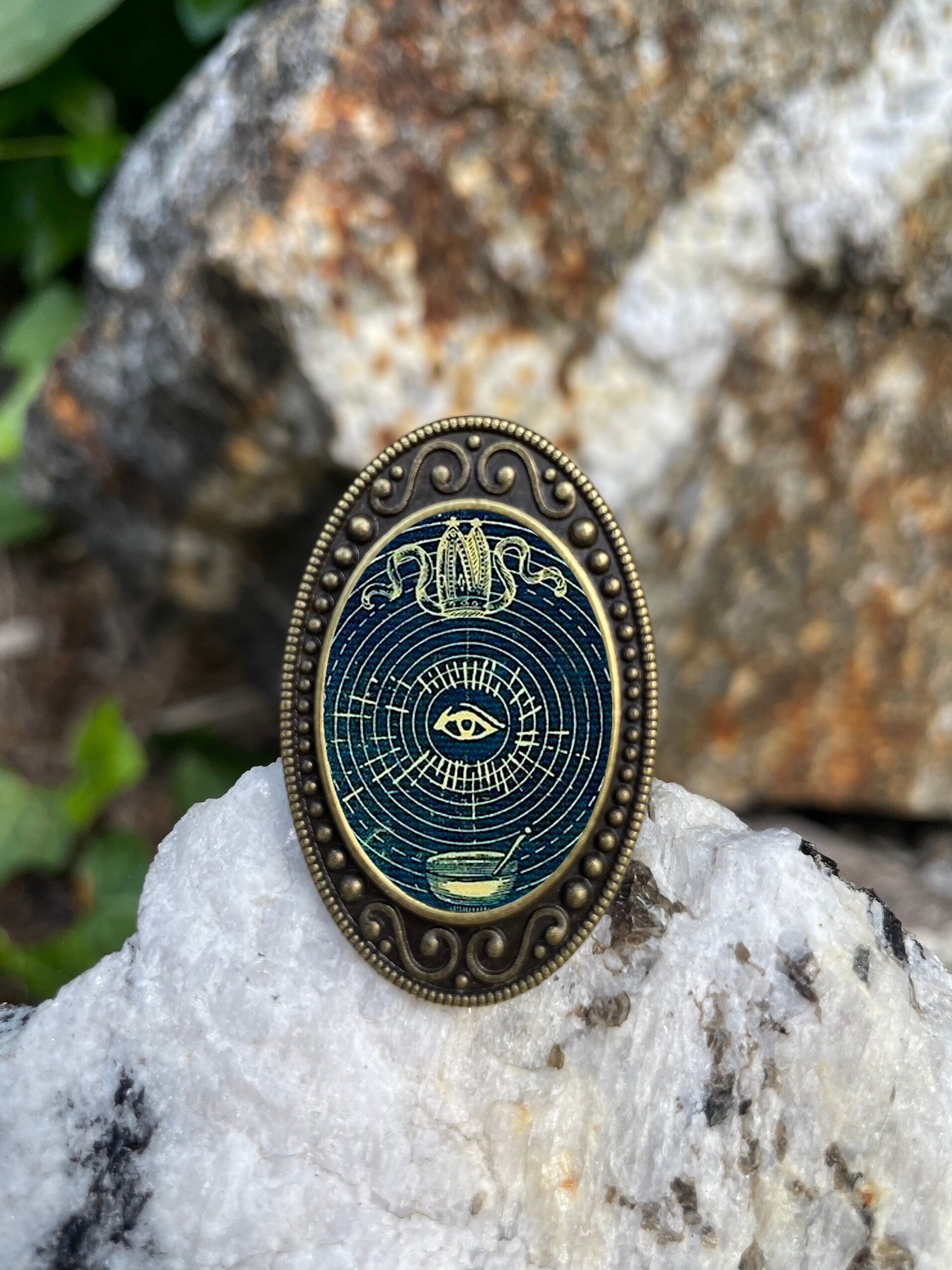 Eye Tarot Card Antiqued Bronze Adjustable Ring Mystical Occult Brass