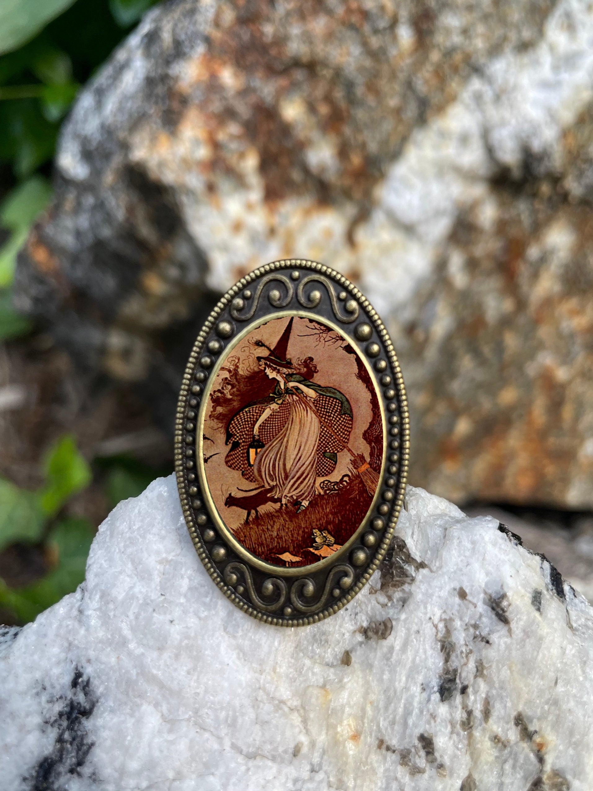 Fairytale Witch Antiqued Bronze Adjustable Ring Fairy Tale Storybook Halloween Brass
