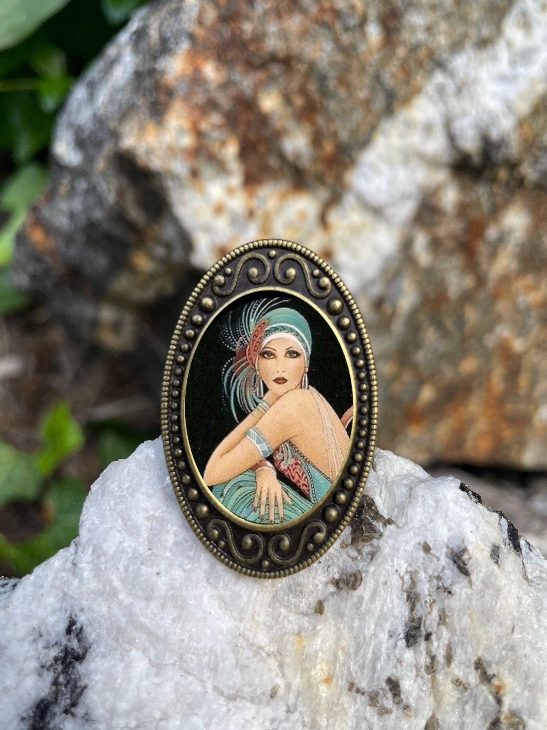 Flapper Green Dress Antiqued Bronze Adjustable Ring Art Deco 1920s Brass