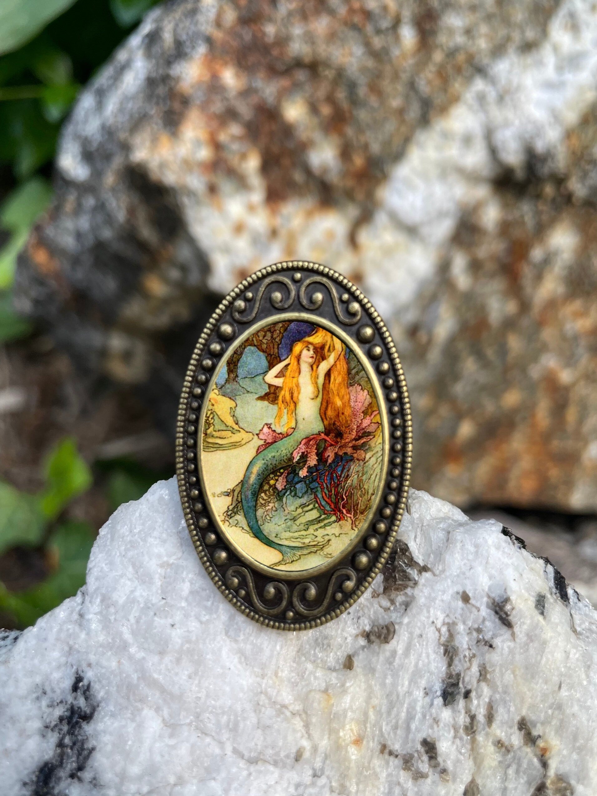 Goble Mermaid Antiqued Bronze Adjustable Ring Fairy Tale Fairytale Brass