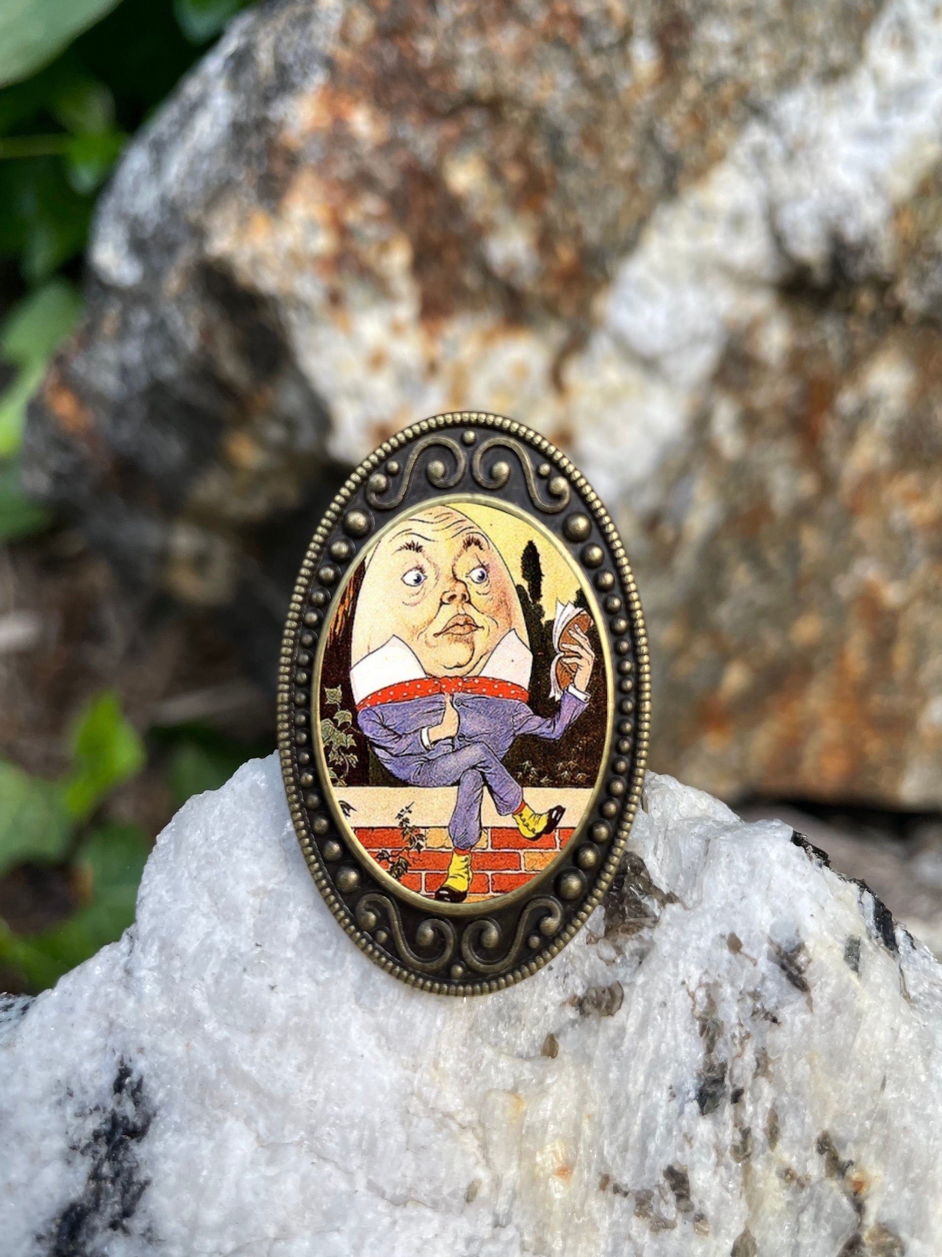 Humpty Dumpty Antiqued Bronze Adjustable Ring Storybook Nursery Rhyme Brass