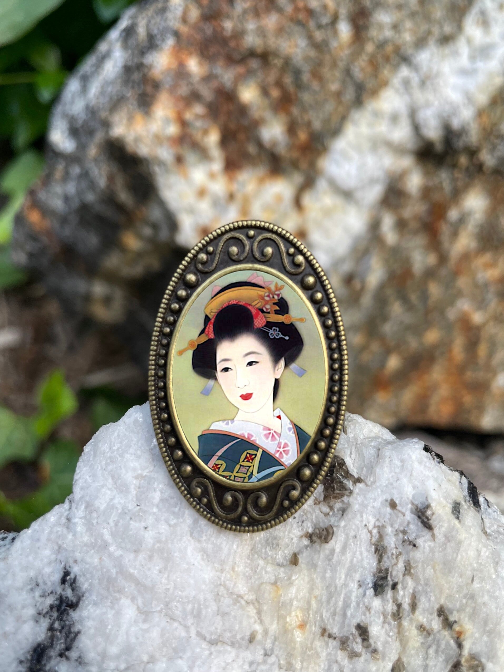 Japanese Geisha Antiqued Bronze Adjustable Ring Japan Asian Art Brass