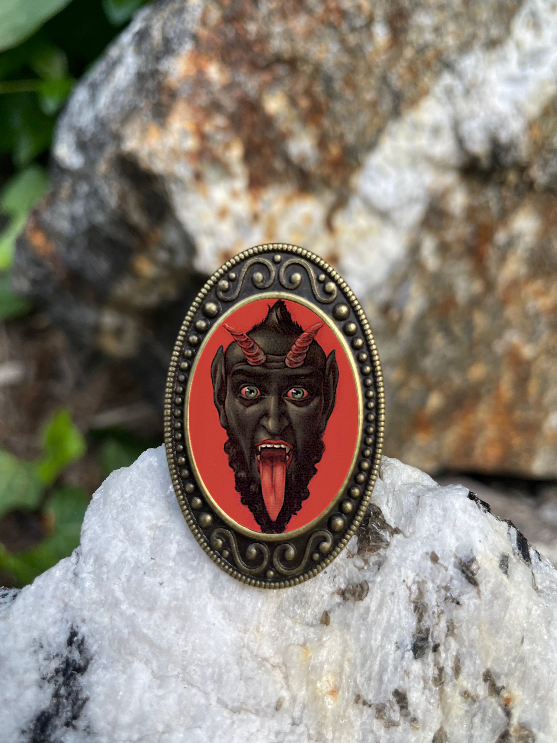 Krampus Antiqued Bronze Adjustable Ring Christmas Folklore Devil Brass