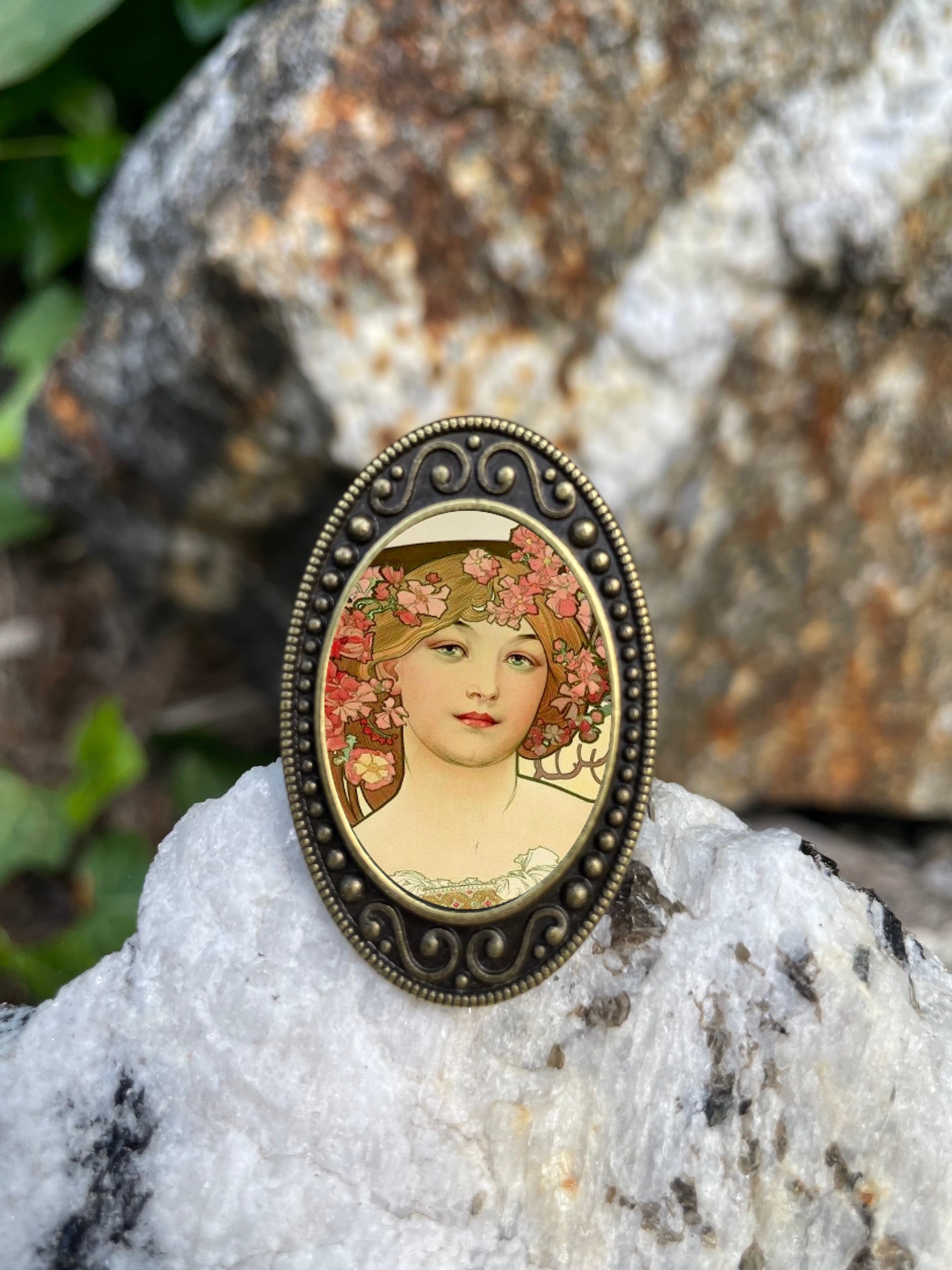 Mucha Champenois Antiqued Bronze Adjustable Ring Art Nouveau Brass