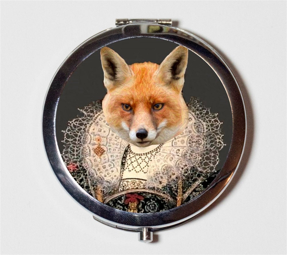 Royal Fox Compact Mirror - Tudor Animal Pop Art Queen Anthropomorphic - Make Up Pocket Mirror for Cosmetics