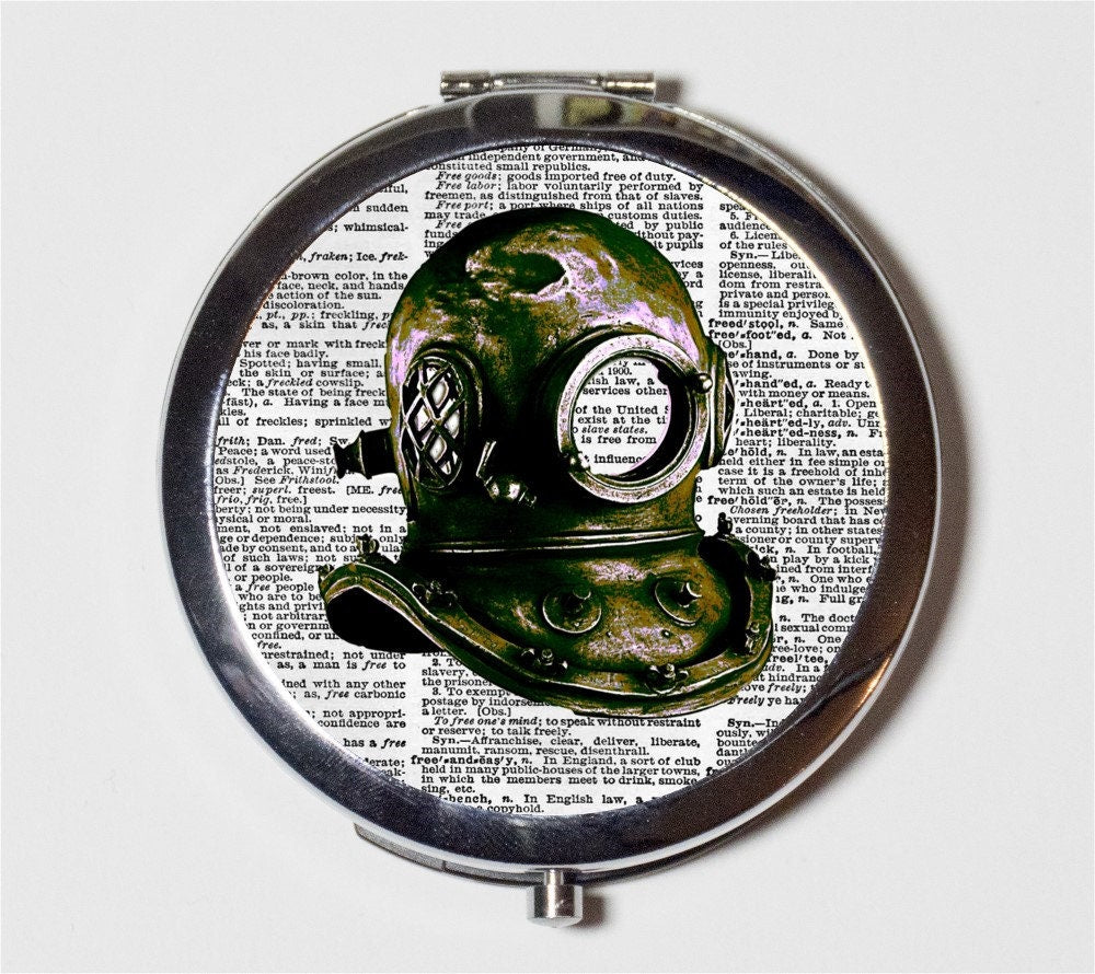 Scuba Mask Compact Mirror - Victorian Steampunk Gear Deep Sea Diving - Make Up Pocket Mirror for Cosmetics
