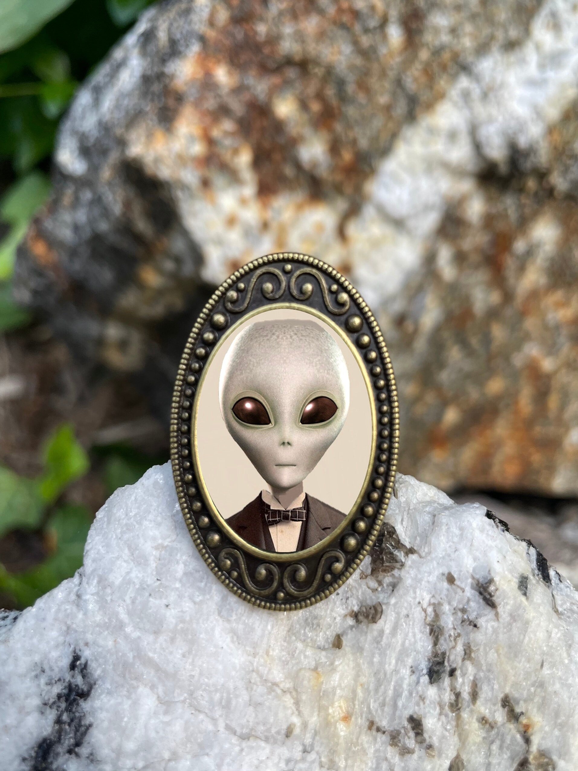 Victorian Alien Man Ring Antiqued Bronze Adjustable Surrealism UFO Brass