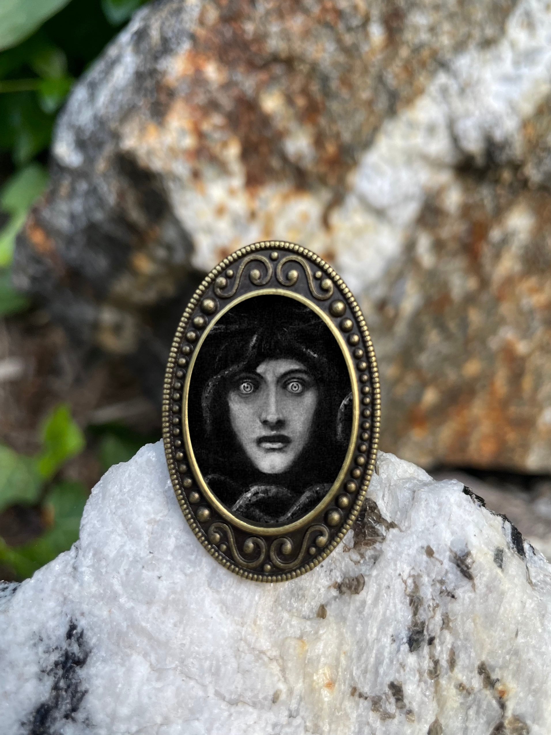 Von Stuck Medusa Antiqued Bronze Adjustable Ring Snake Lady Greek Myth Brass