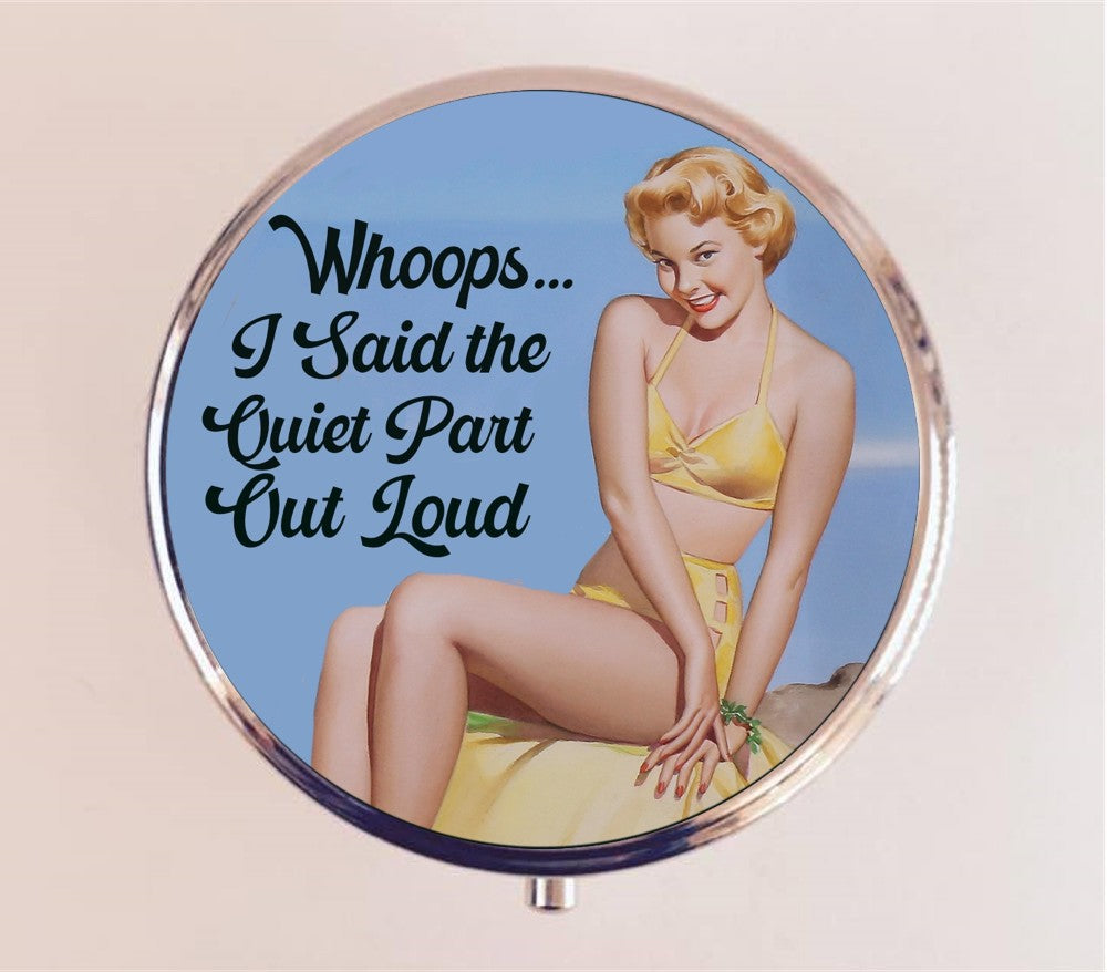 Whoops I Said the Quiet Part Out Loud Pin Up Funny Pill Box Case Pillbox Holder Trinket Stash Box Pinup Girl Humor Snarky