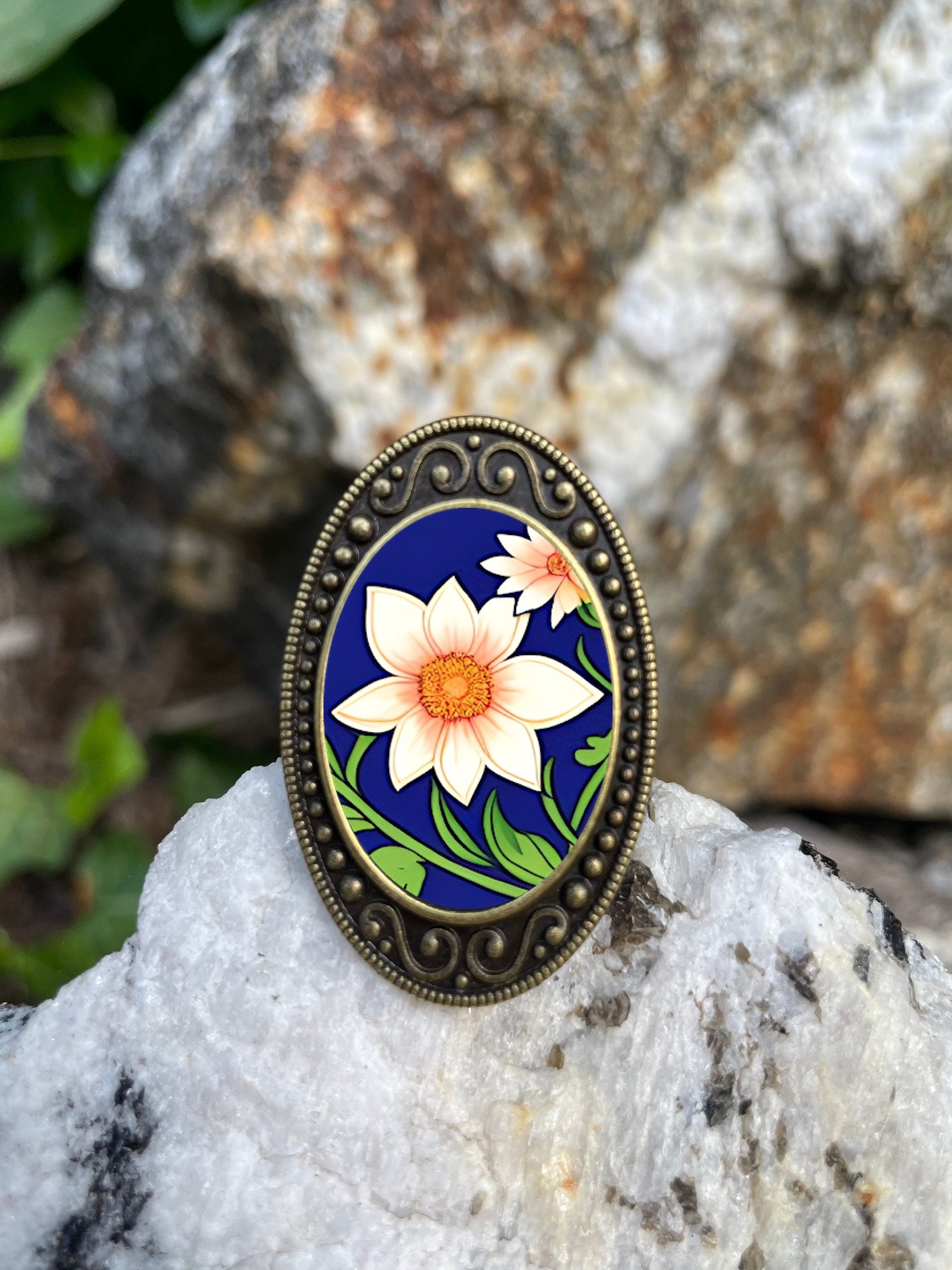 Yellow Flower Antiqued Bronze Adjustable Ring Art Deco Style Brass